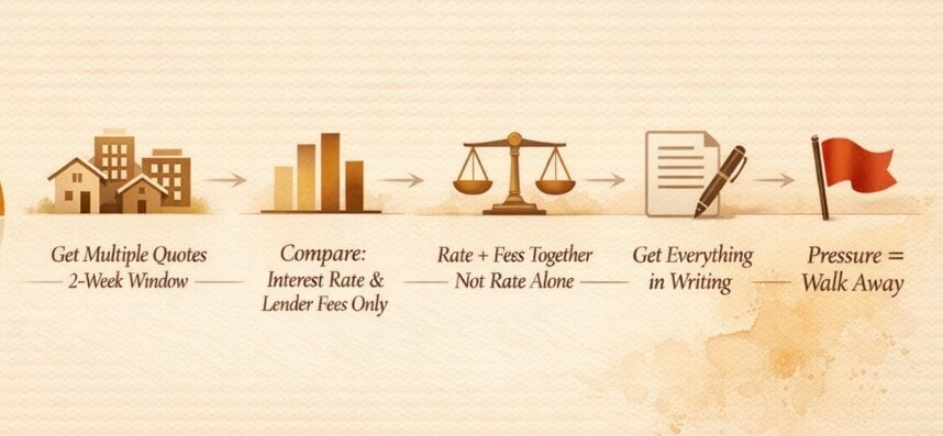 Compare only two variables: interest rate and lender fees. Title insurance and escrow estimates are either federally regulated or nearly identical regardless of lender - do not use them to compare.