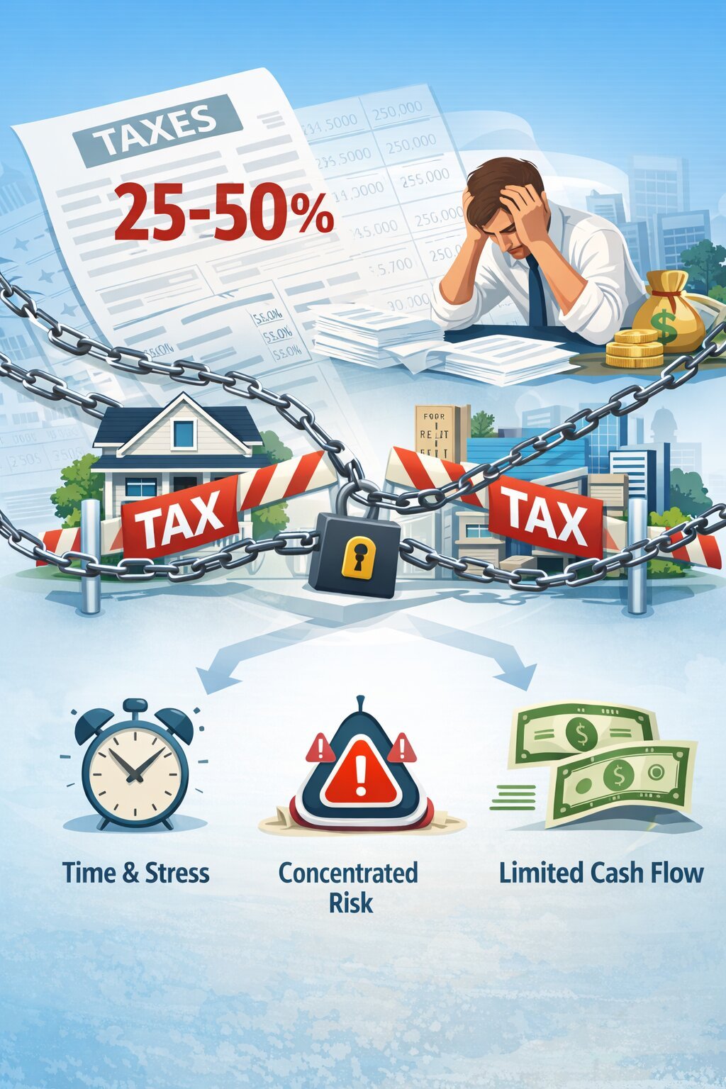 Most real estate investors arrive at the exit conversation with the same problem: everything is tied up in one asset, one market, or one city. That concentration worked during the growth phase but, according to Investopedia, it becomes a risk and a liability the moment you want liquidity, income, or flexibility.