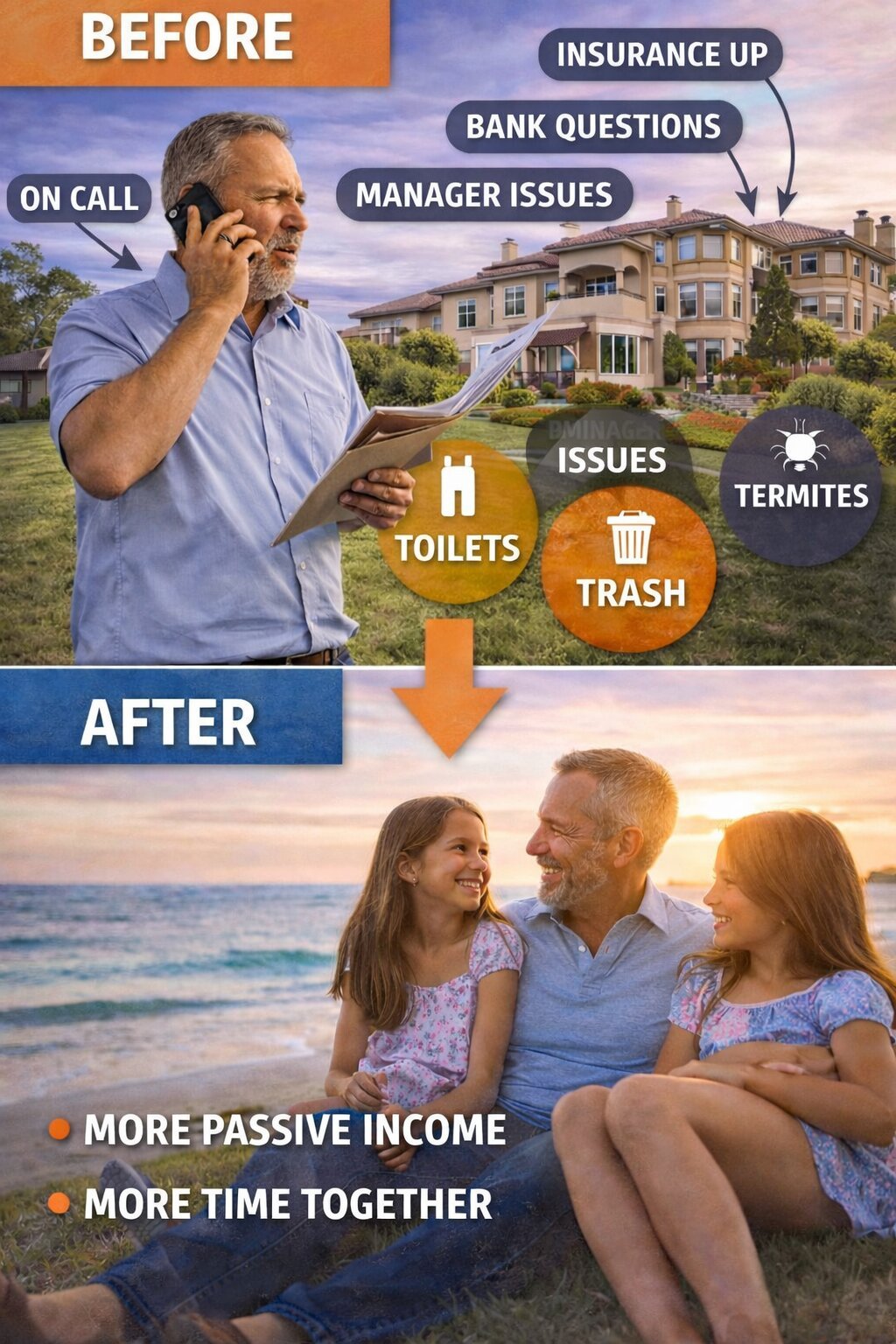 Return on Time (ROT) is the value of reclaiming your time from actively managed assets. The Return on Time vs Return on Investment comparison is central to how Brett's clients evaluate their exits - freedom gained matters as much as financial returns.