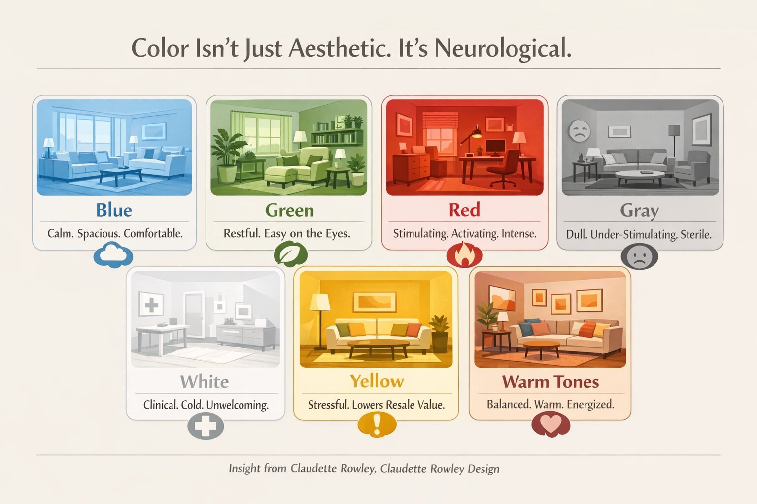 “It’s not ‘beauty is in the eye of the beholder.’ It’s beauty is in the brain of the beholder. Our brain responds universally to certain things - and that’s exactly why some of these tips and strategies work.”– Claudette Rowley, Founder, Claudette Rowley Design