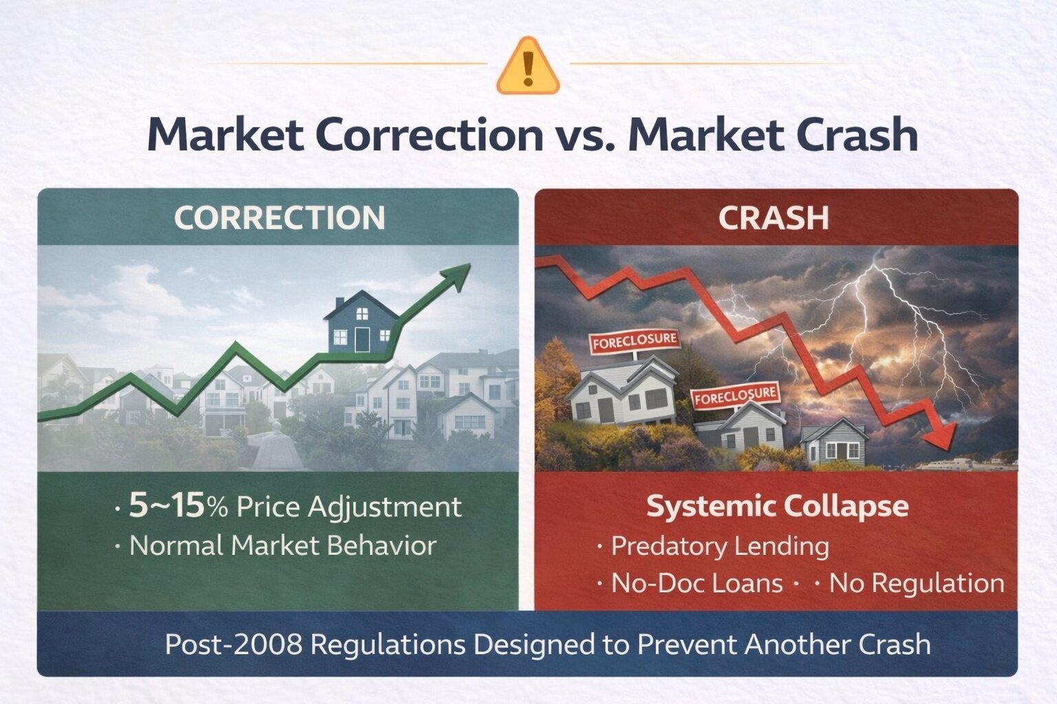 Here’s the distinction Taylor wants every buyer to have clearly: what happened in Colorado was a correction - approximately a 10% price adjustment - not a crash. A correction is healthy and expected. A crash is a systemic collapse.